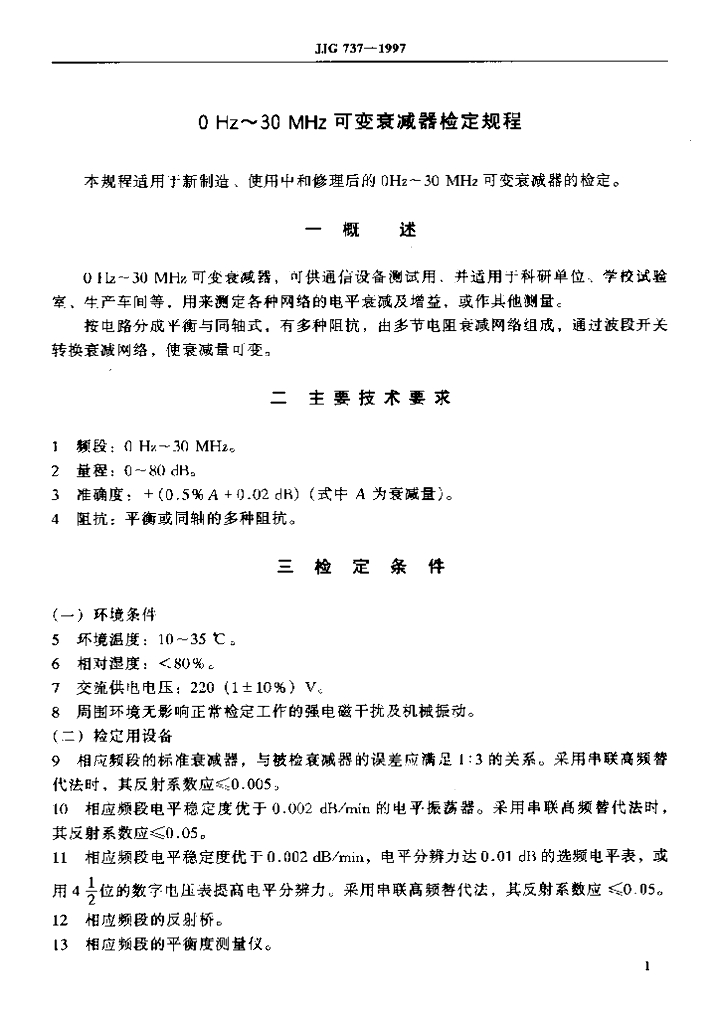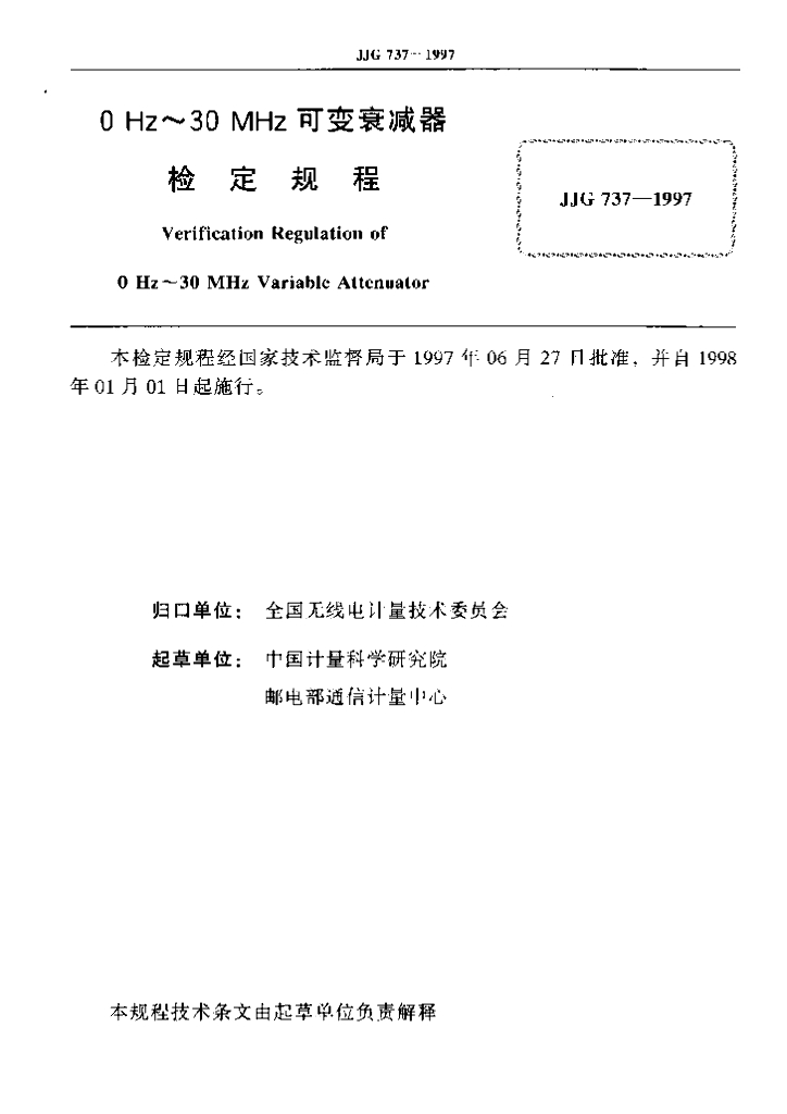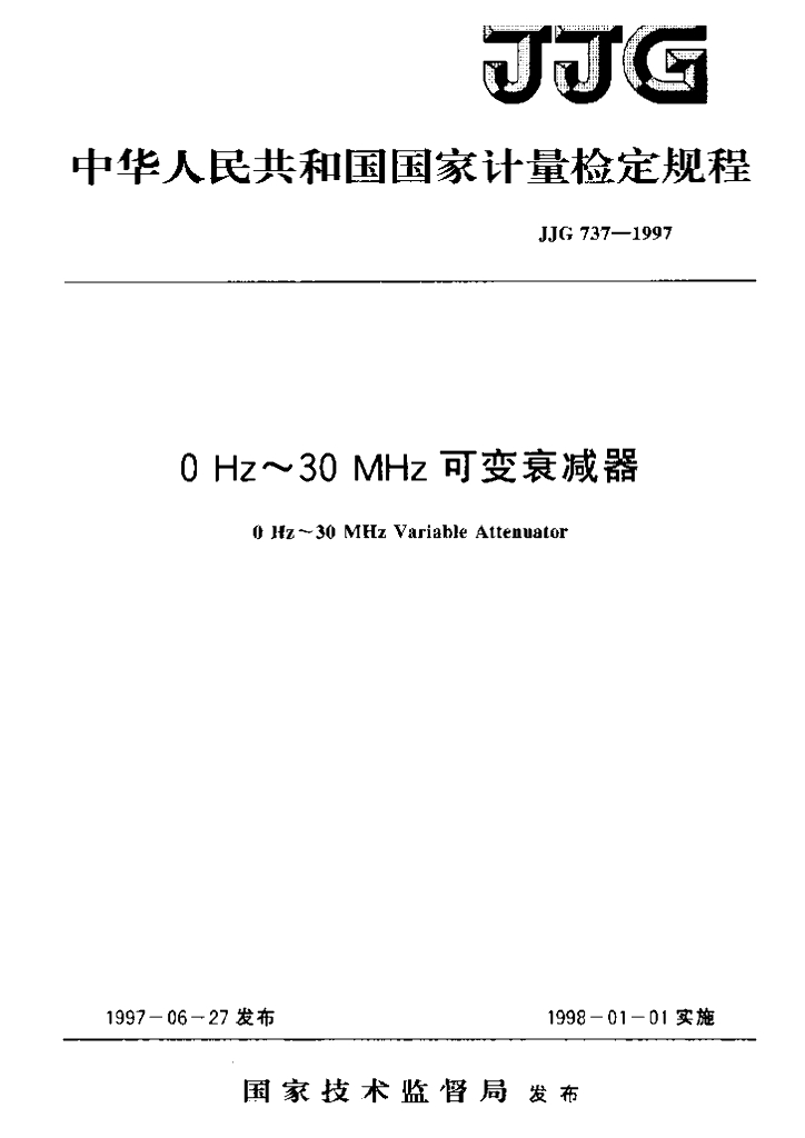 JJG 737-1997 0Hz~30MHz可变衰减器检定规程