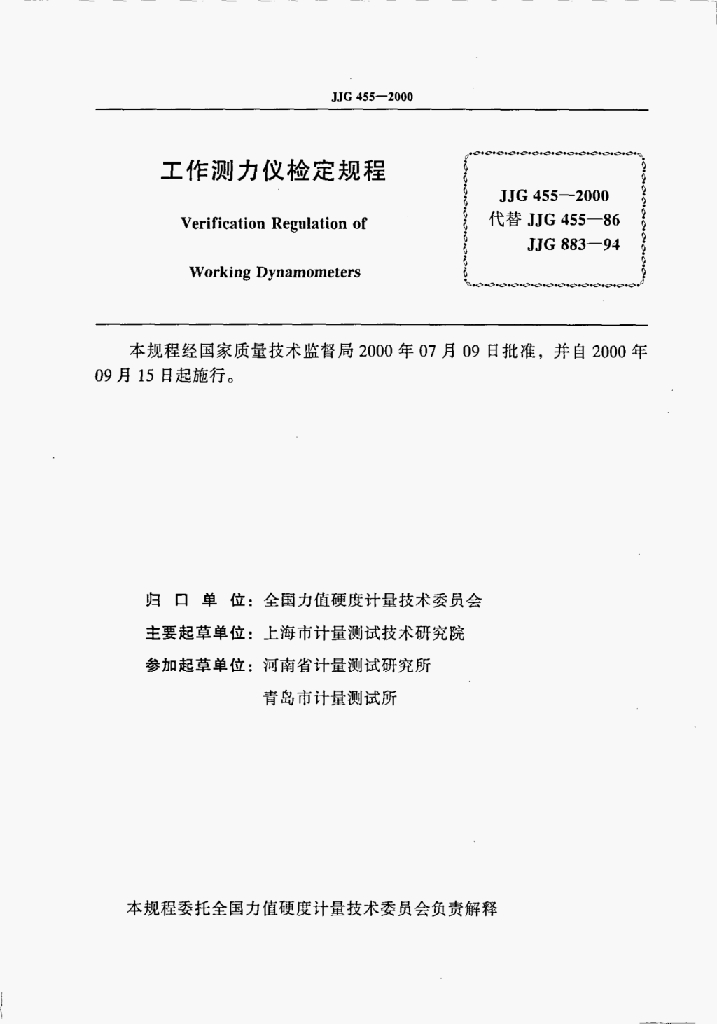 张贵仁(上海市计量测试技术研究院)、程新选(河南省计量测试研究所)、夏忠良(上海市计量测试技术研究院)、王南宁(上海市计量测试技术研究院)、马宏林(青岛市计量测试厅)