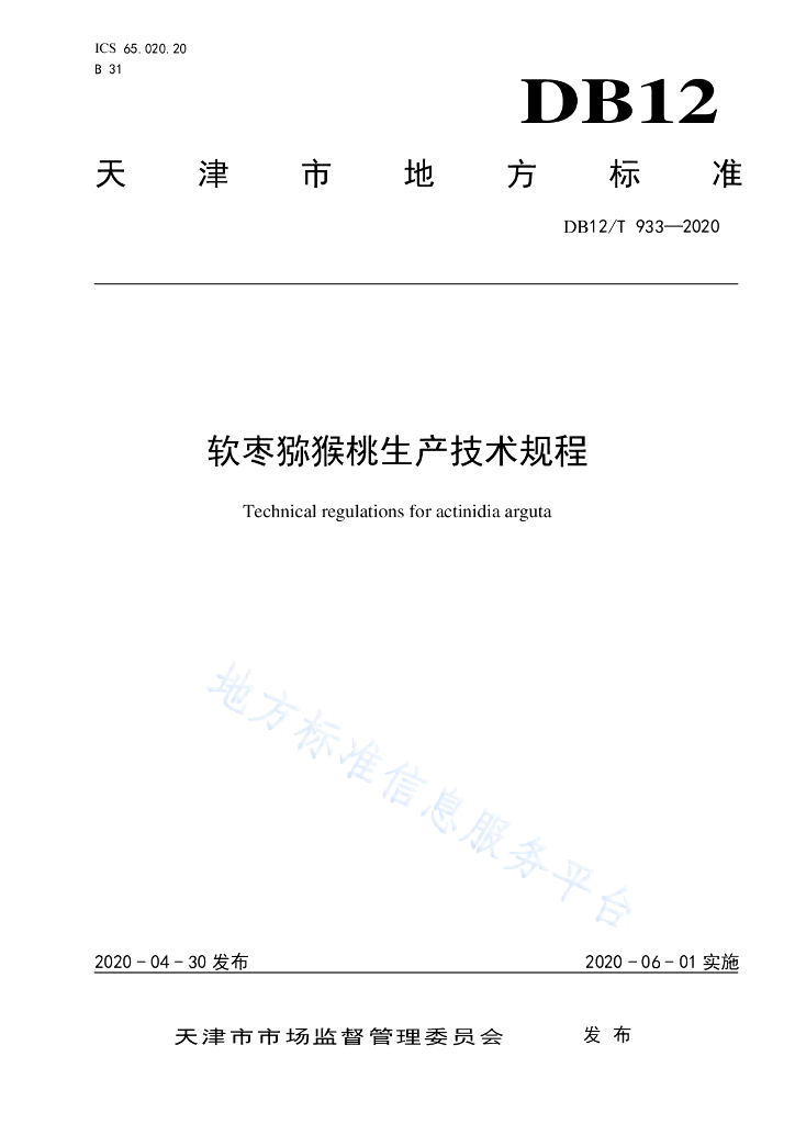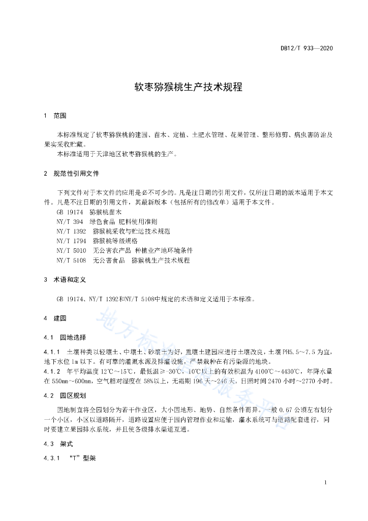 DB12/T 933-2020 软枣猕猴桃生产技术规程