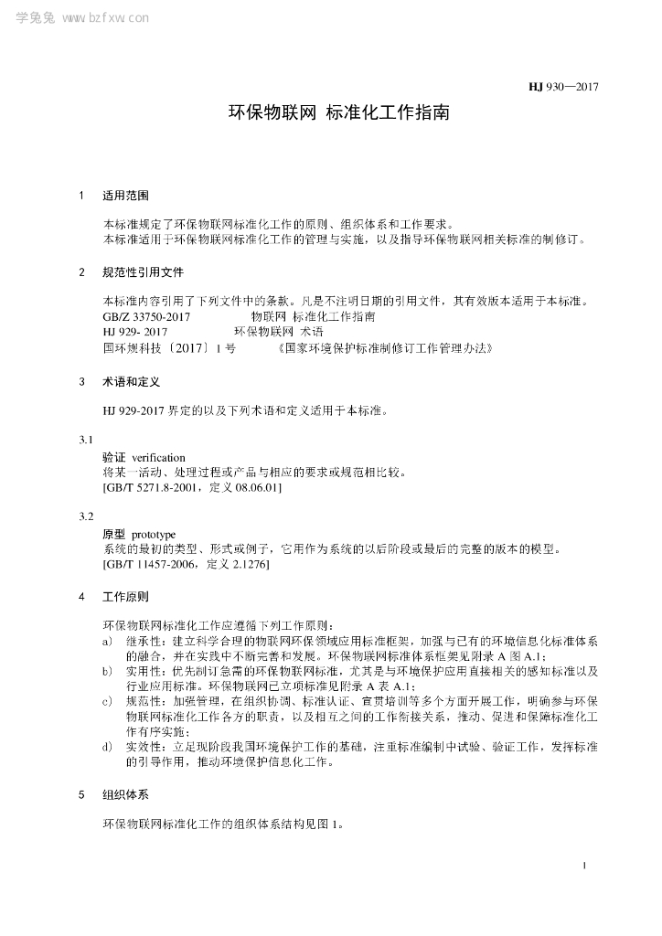 HJ 930-2017 环保物联网 标准化工作指南