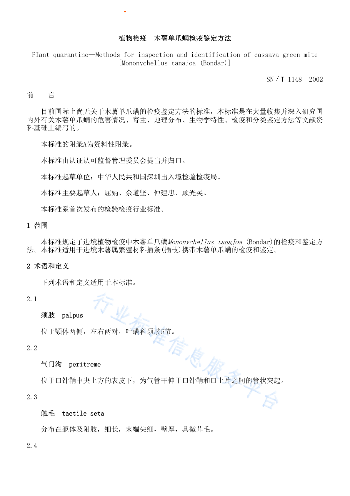 SN/T 1148-2002 木薯单爪螨检疫鉴定方法