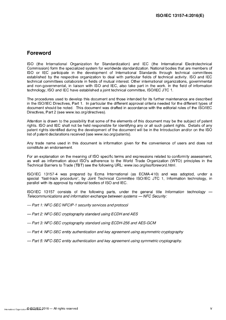 ISO/IEC 13157-4-2016 信息技术 系统间远程通信和信息交换 NFC安全 第4部分:使用非对称加密的NFC-SEC实体认证和密钥协议