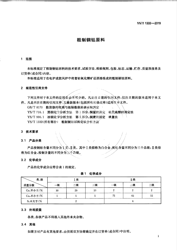 YS/T 1333-2019 粗制铜钴原料