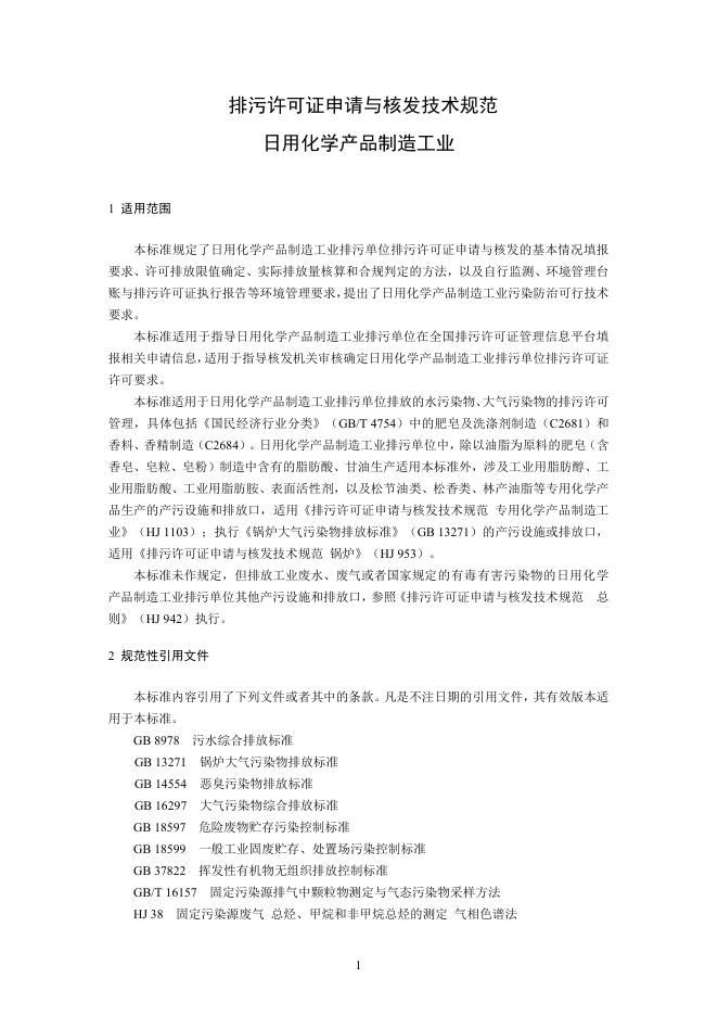 HJ 1104-2020 排污许可证申请与核发技术规范 日用化学产品制造工业