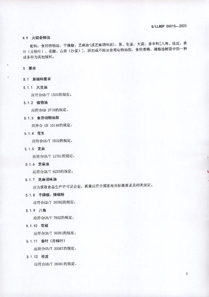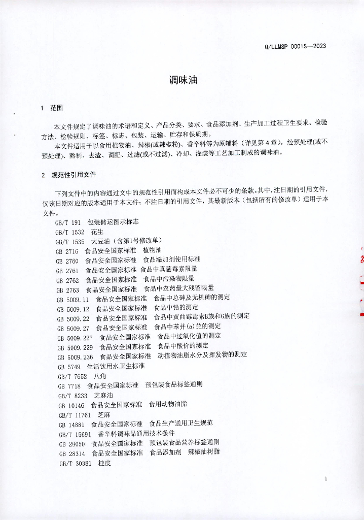 Q/LLMSP 0001S-2023 调味油