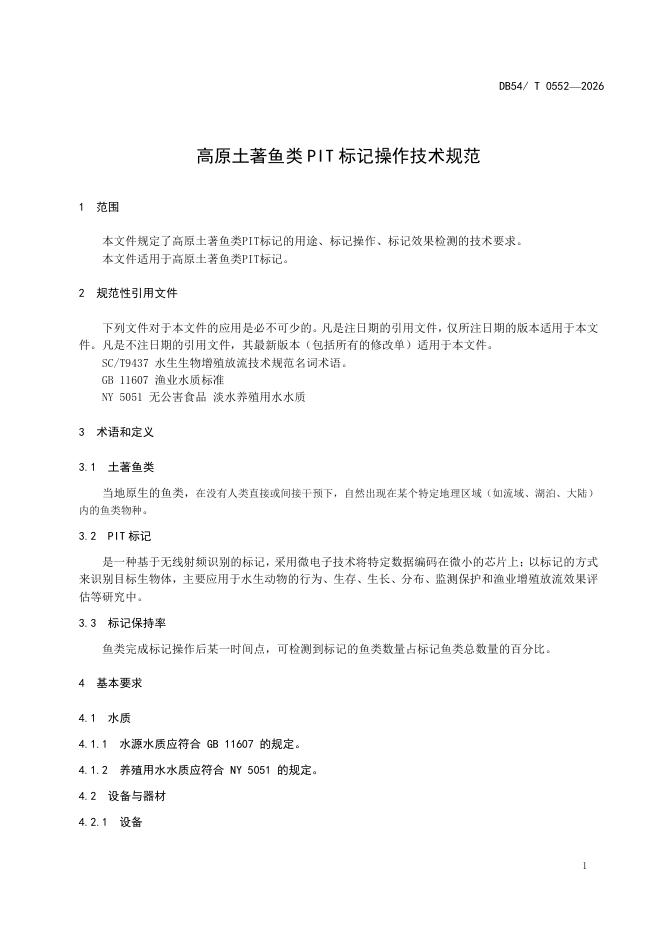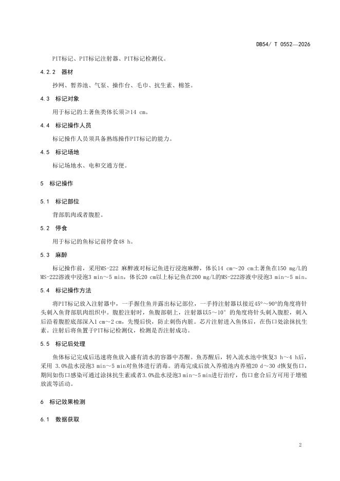 DB54/T 0552-2026 高原土著鱼类PIT标记操作技术规范