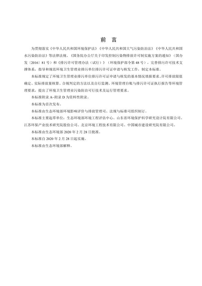 HJ 1106-2020 排污许可证申请与核发技术规范 环境卫生管理业