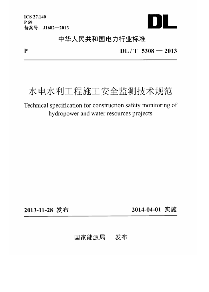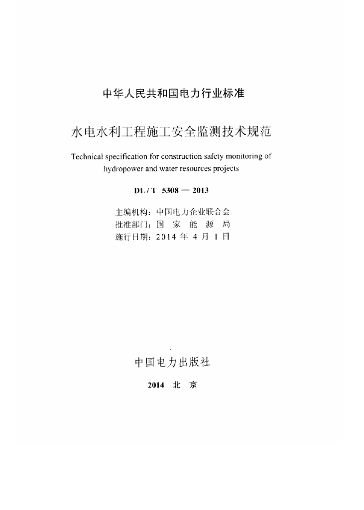 DL/T 5308-2013 水电水利工程施工安全监测技术规范