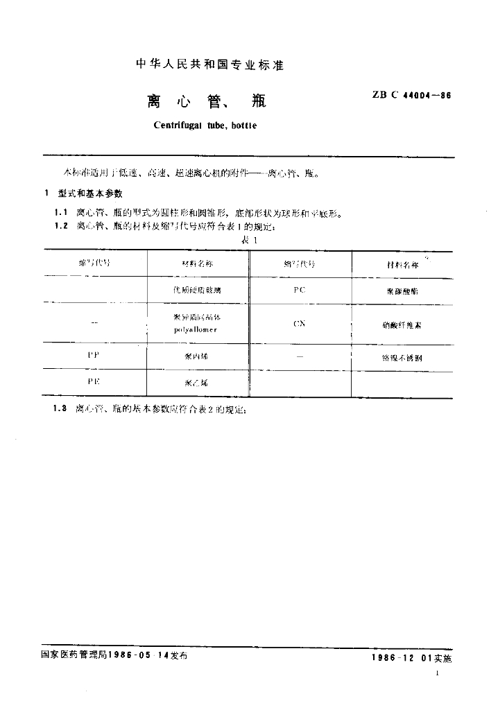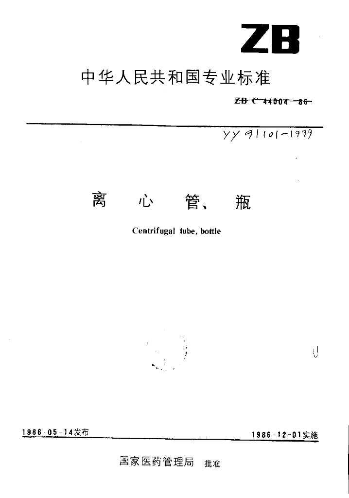 YY 91101-1999 离心管、瓶