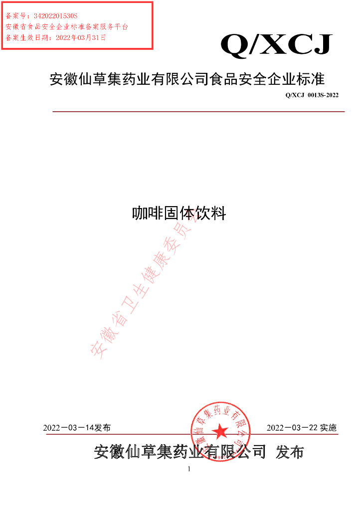 Q/XCJ 0013S-2022 咖啡固体饮料