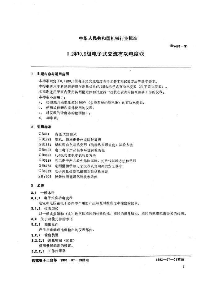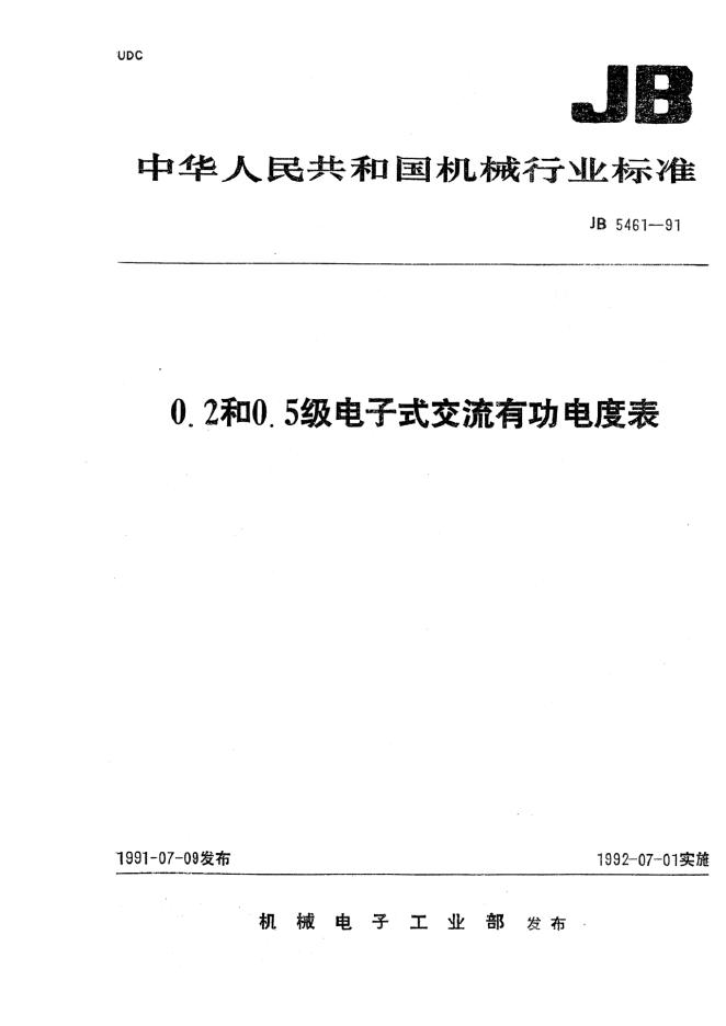 JB 5461-1991 0.2和0.5级电子式交流有功电度表