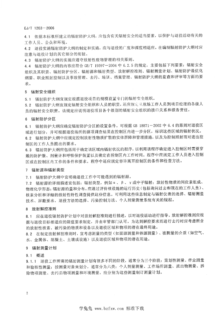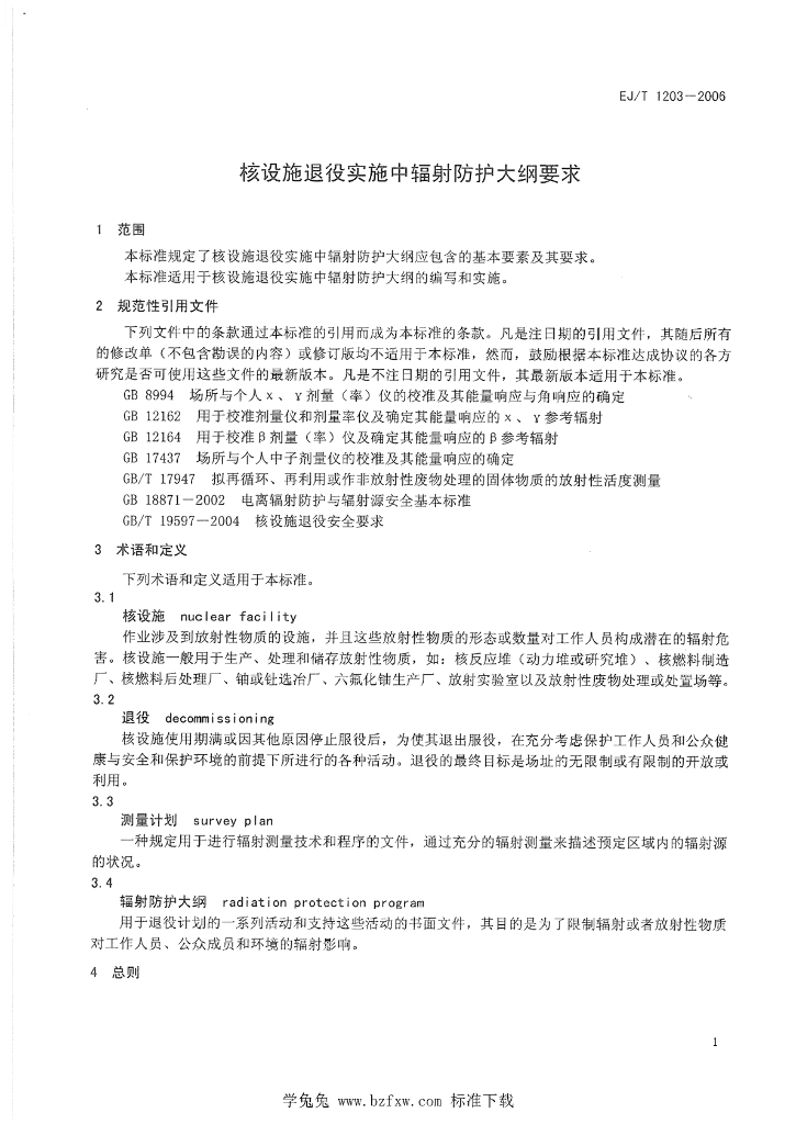 EJ/T 1203-2006 核设施退役实施中辐射防护大纲要求