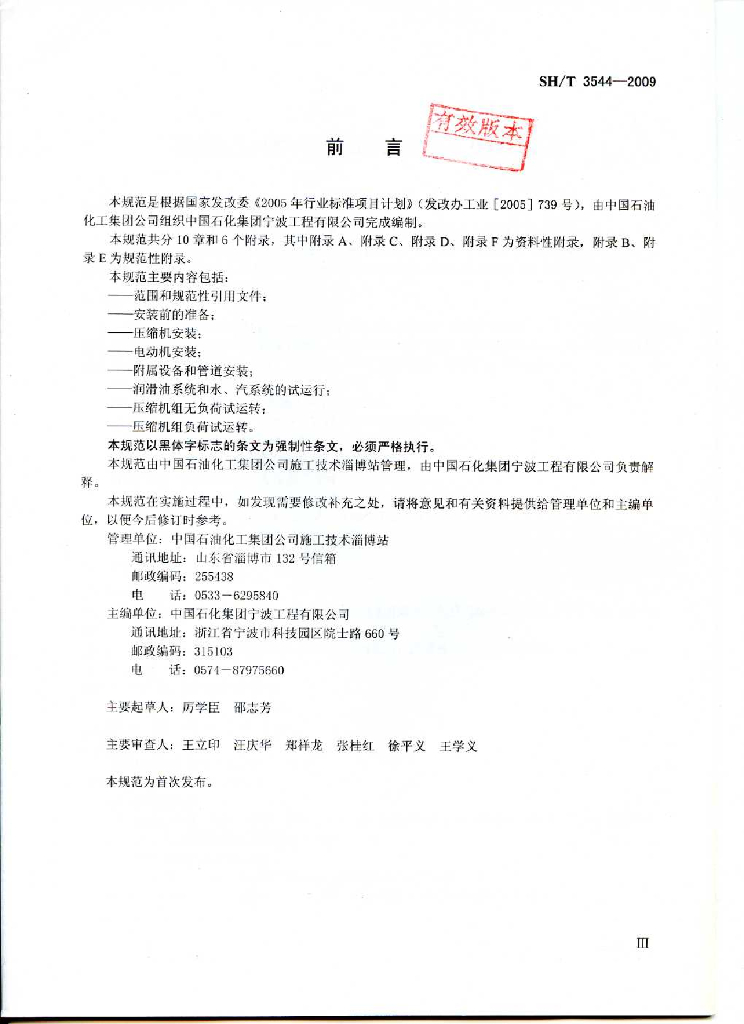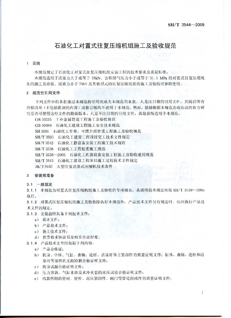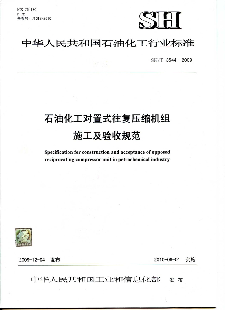 SH/T 3544-2009 石油化工对置式往复压缩机组施工及验收规范