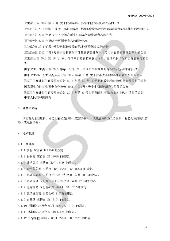 Q/WKSW 0009S-2022 酸奶、豆酸奶发酵粉