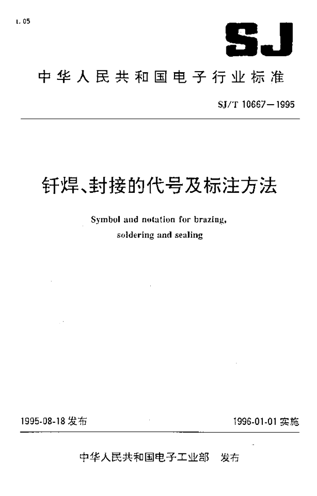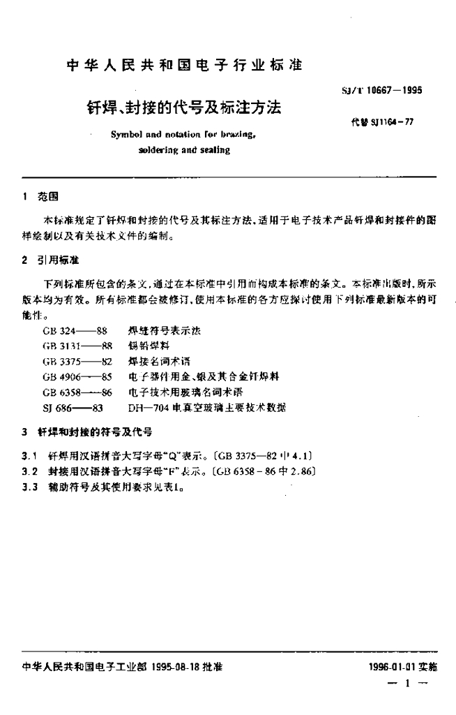 SJ/T 10667-1995 钎焊、封接的代号及标注方法
