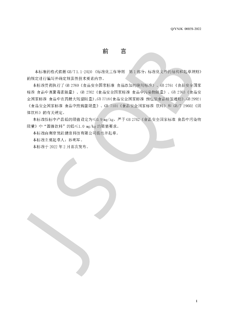Q/YNJK 0003S-2022 即食型益生菌系列产品