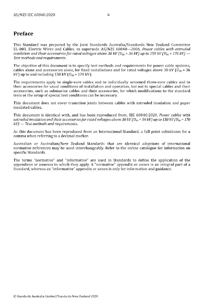 AS/NZS 60840:2020 额定电压30kV(Um=36kV)以上至150kV(Um=170kV)挤出绝缘电力电缆及附件