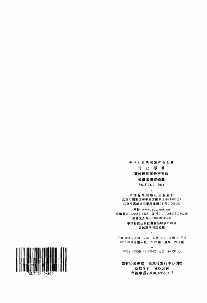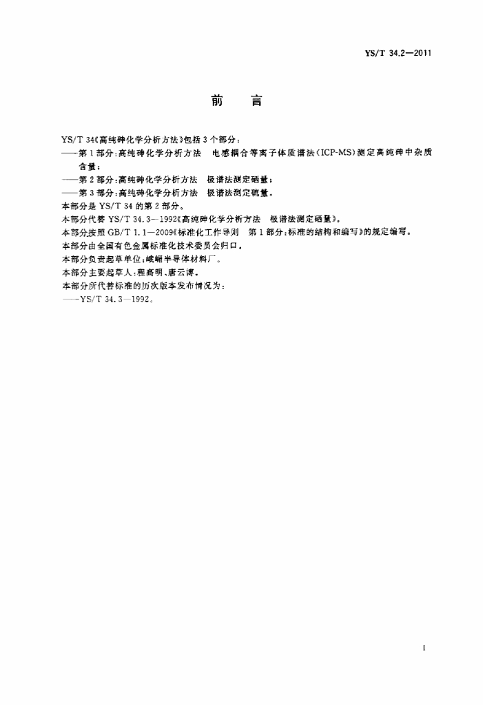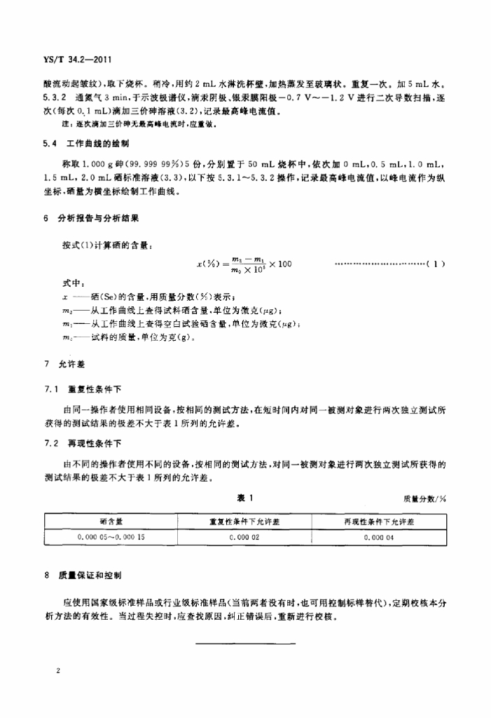 YS/T 34.2-2011 高纯砷化学分析方法极谱法测定硒量标准
