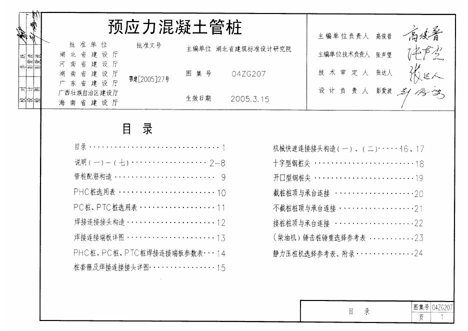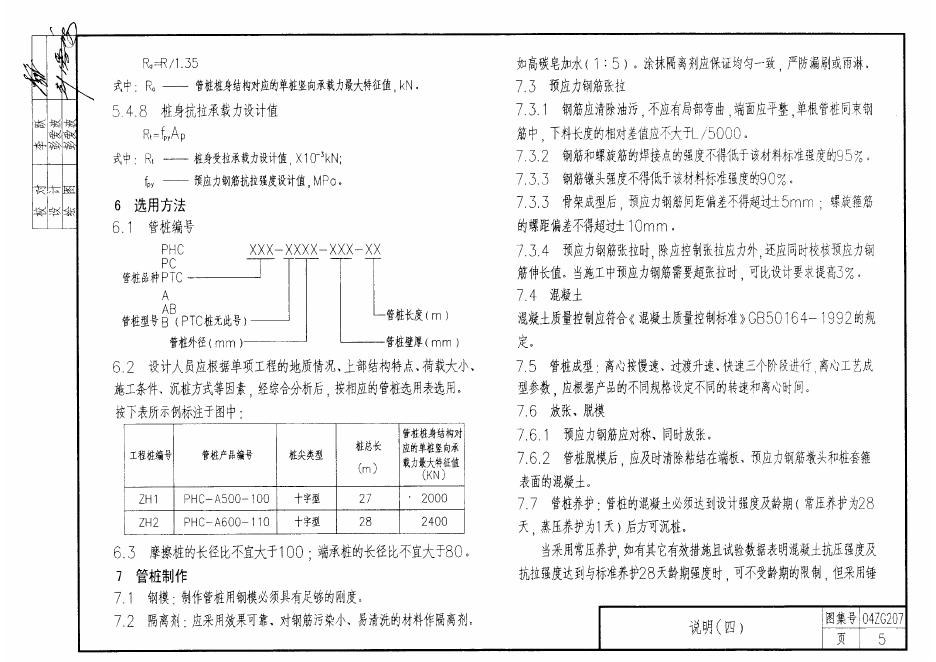 04ZG207 预应力混凝土管桩图集(中南标)