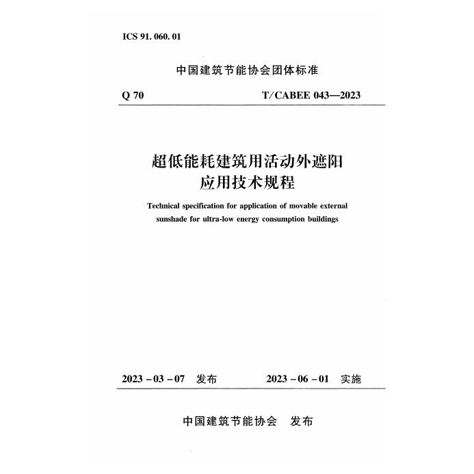 T/CABEE 043-2023 超低能耗建筑用外遮阳应用技术规程