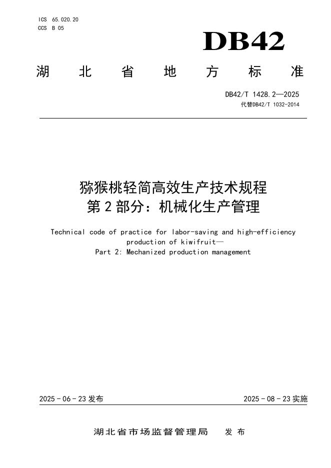 DB42/T 1428.2-2025 猕猴桃轻简高效生产技术规程 第2部分:机械化生产管理