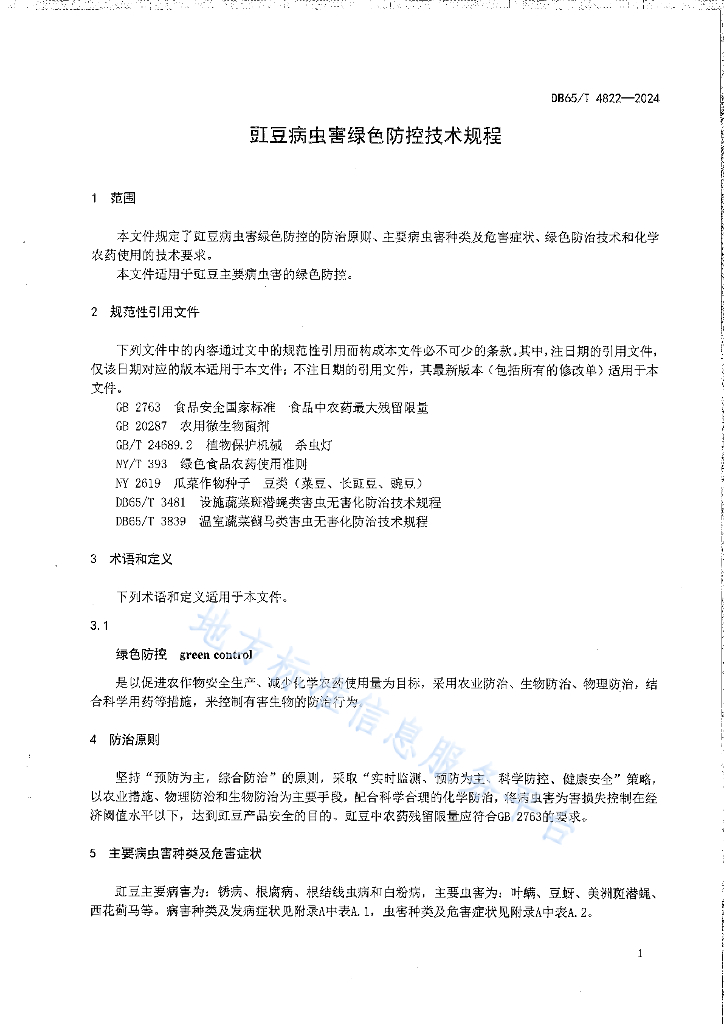 DB65/T 4822-2024 豇豆病虫害绿色防控技术规程