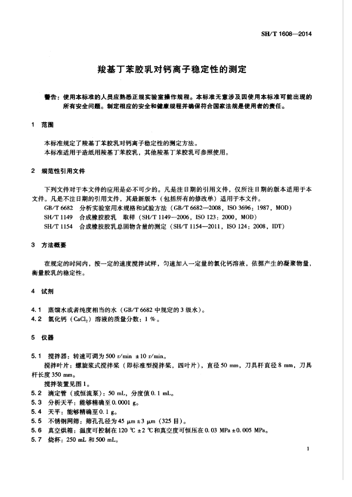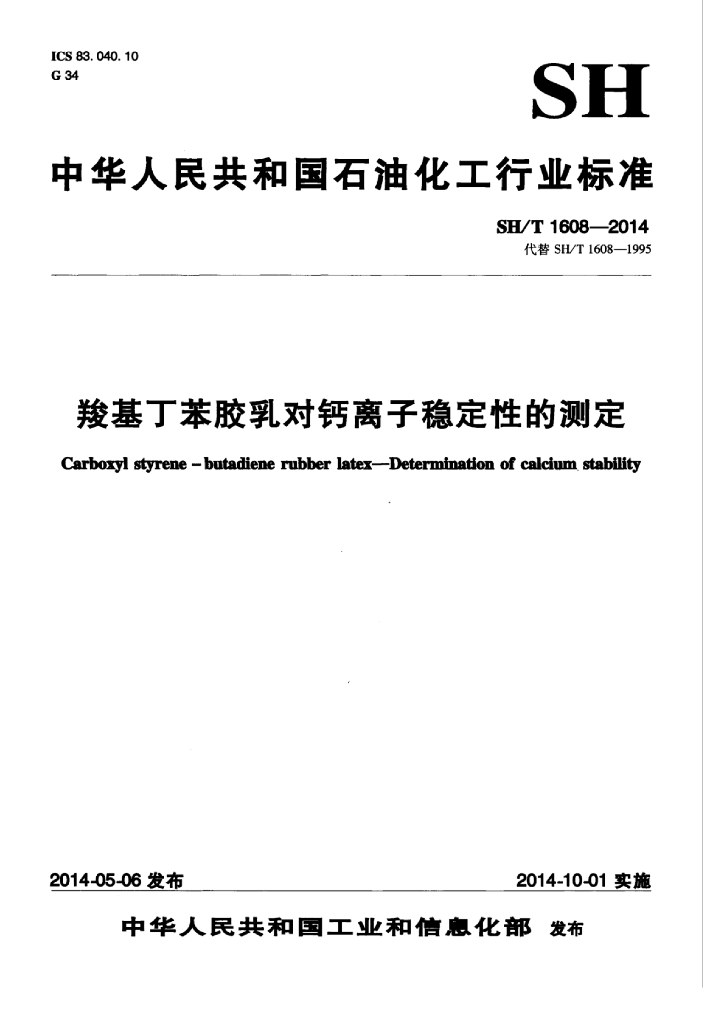 SH/T 1608-2014 羧基丁苯胶乳对钙离子稳定性的测定