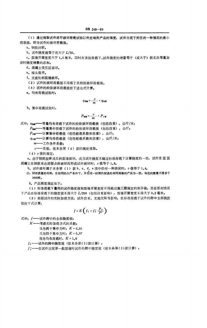 GB 248-1964 装配式钢筋混凝土煤矿巷道支架
