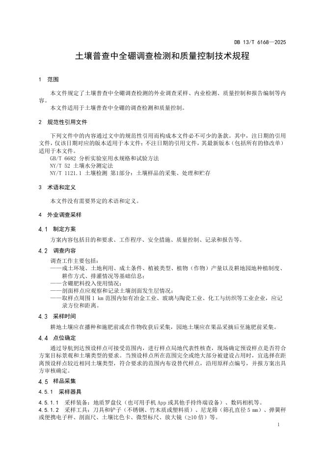 DB13/T 6168-2025 土壤普查中全硼调查检测和质量控制技术规程