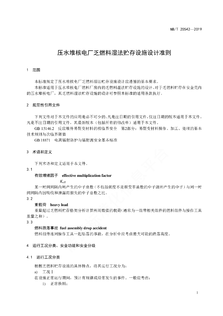 NB/T 20542-2019 压水堆核电厂乏燃料湿法贮存设施设计准则