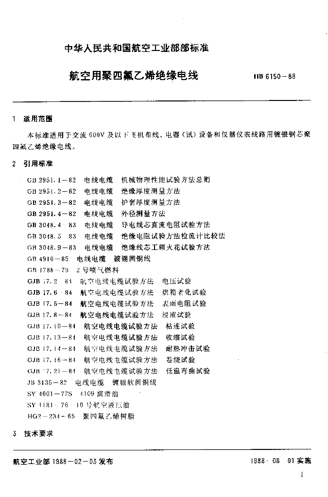 HB 6150-1988 航空用聚四氯乙烯绝缘电线