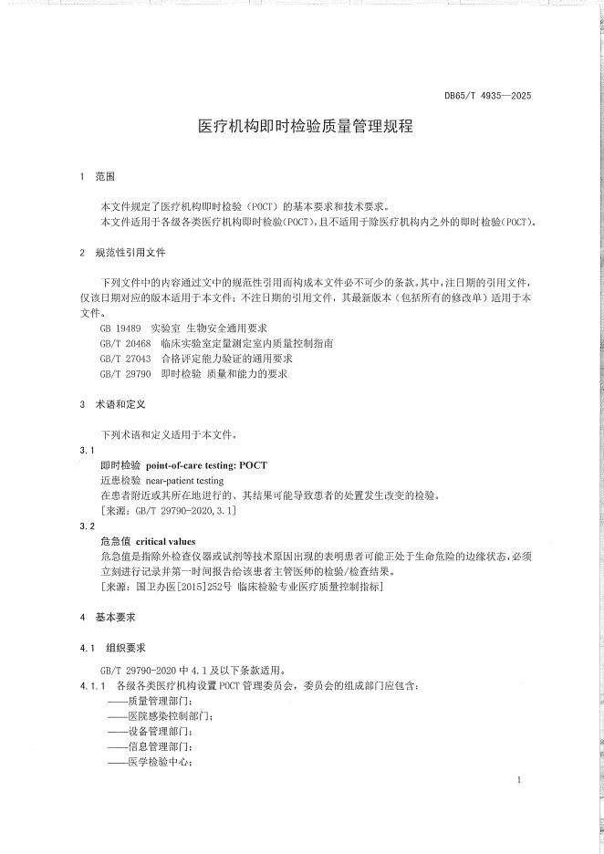 DB65/T 4935-2025 医疗机构即时检验质量管理规程