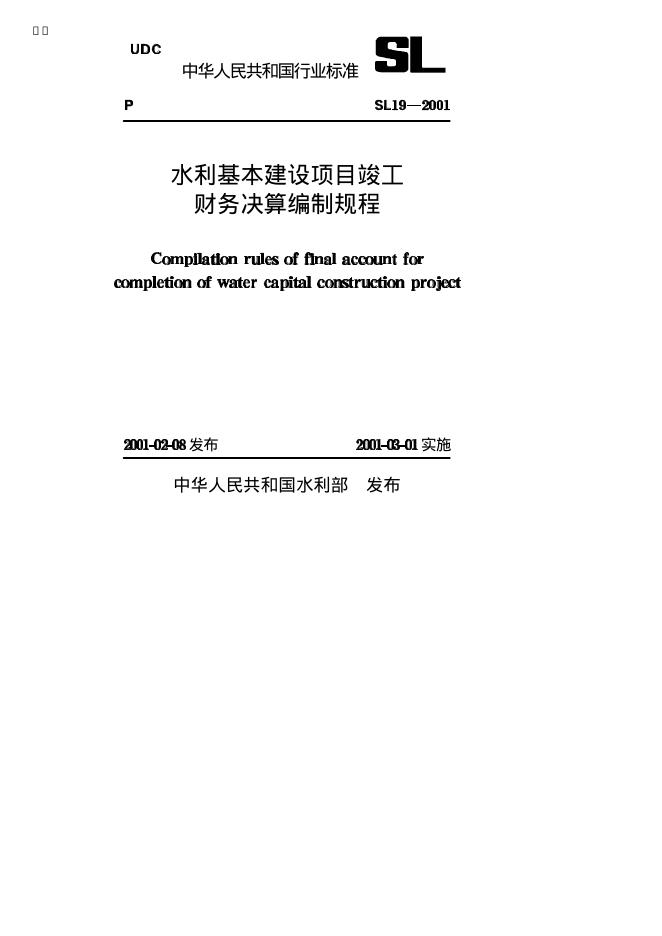 SL 19-2001 水利基本建设项目竣工财务决算编制规程
