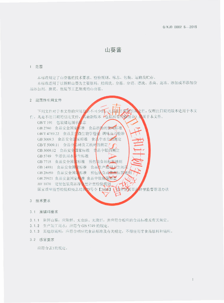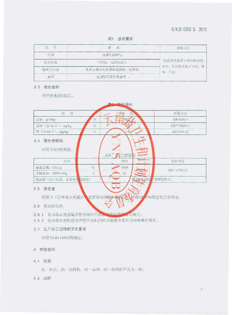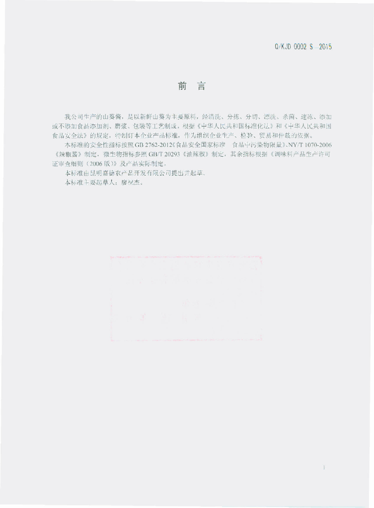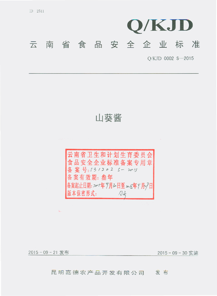 Q/KJD 0002S-2015 昆明嘉德农产品开发有限公司 山葵酱
