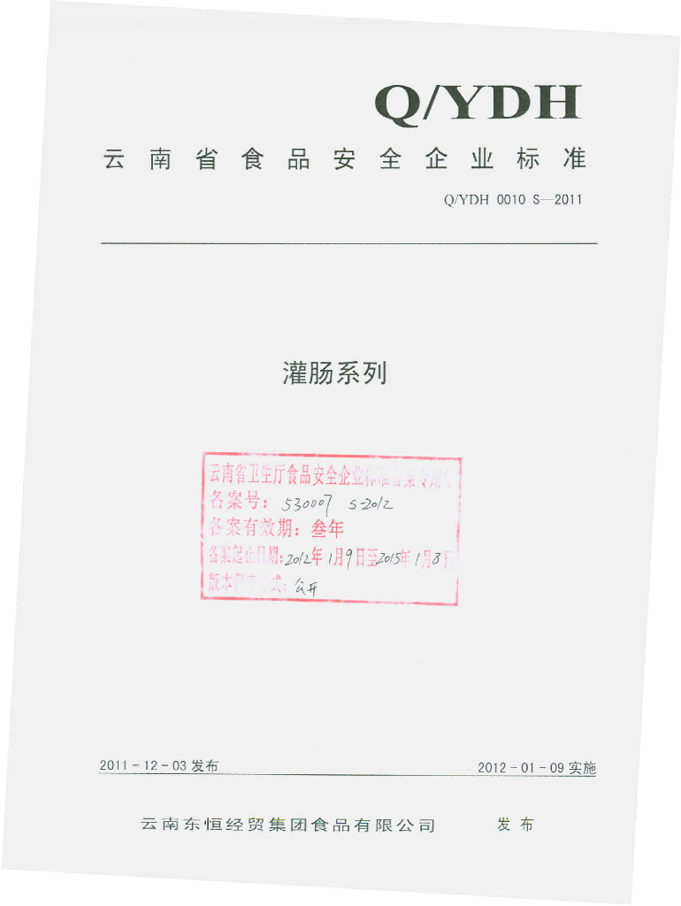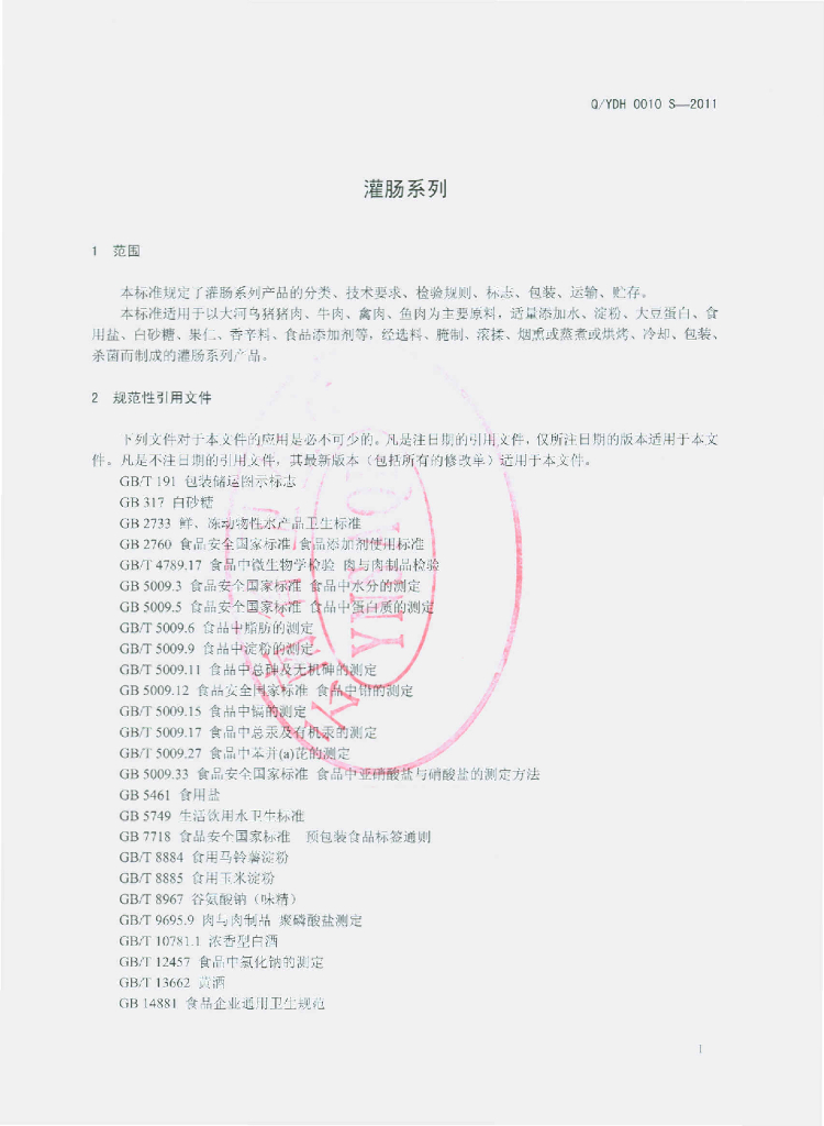 Q/YDH 0010S-2011 灌肠系列