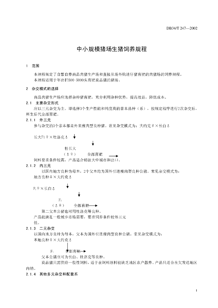 DB34/T 247-2002 中小规模猪场生猪饲养规程
