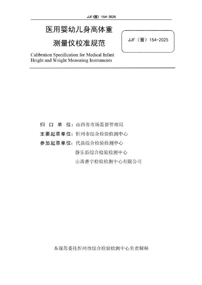 JJF(晋)154-2025 医用婴幼儿身高体重测量仪校准规范