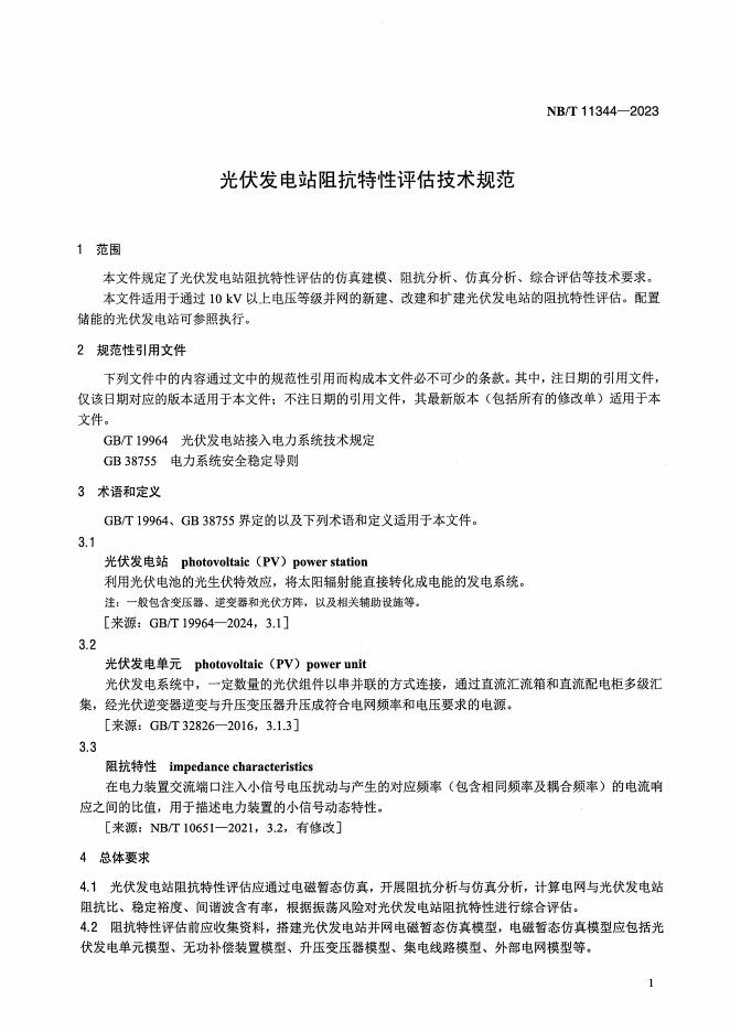 NB/T 11344-2023 光伏发电站阻抗特性评估技术规范
