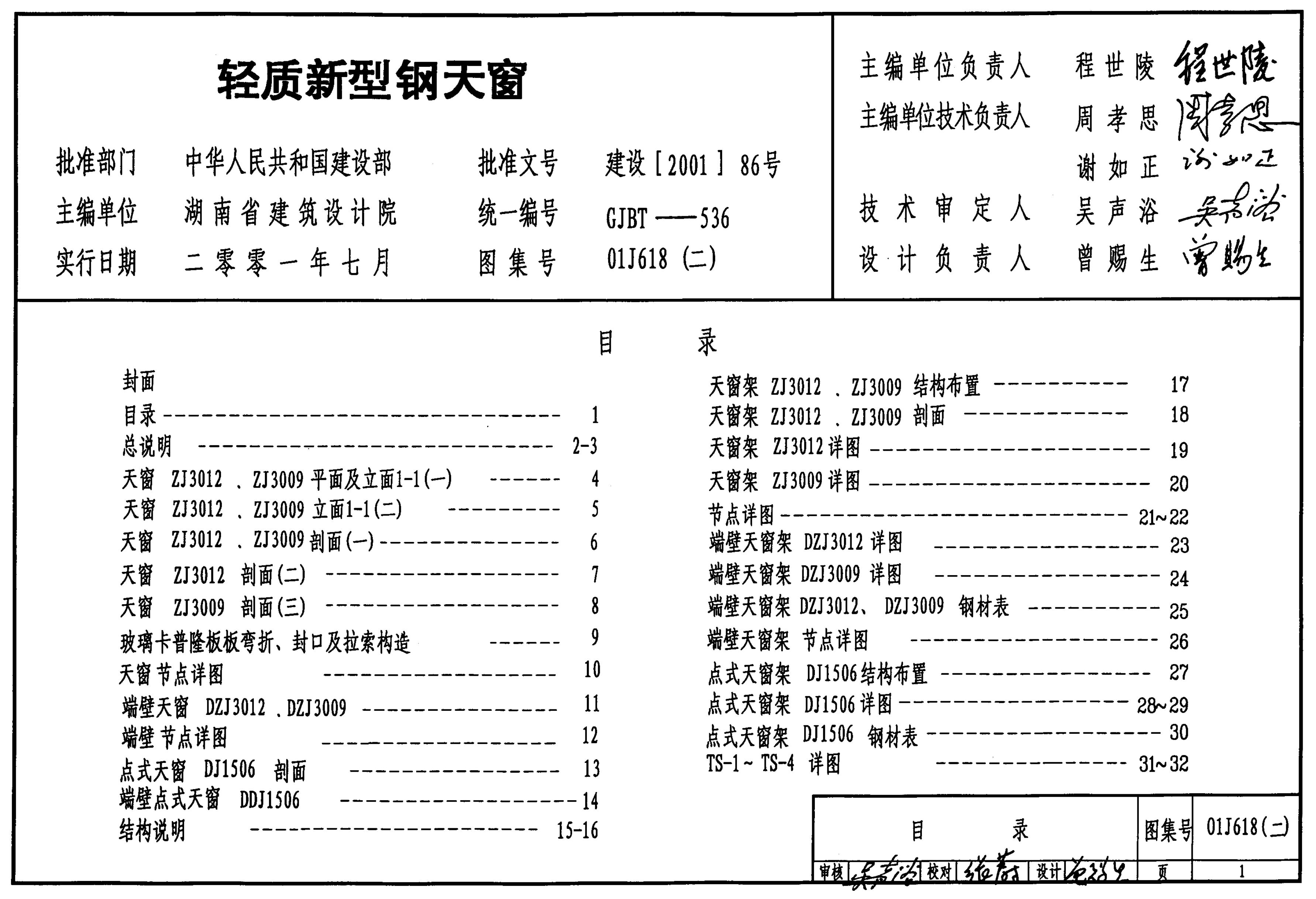 01J618(二) 轻质新型钢天窗图集