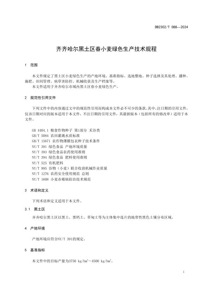 DB2302/T 088-2024 齐齐哈尔黑土区春小麦绿色生产技术规程