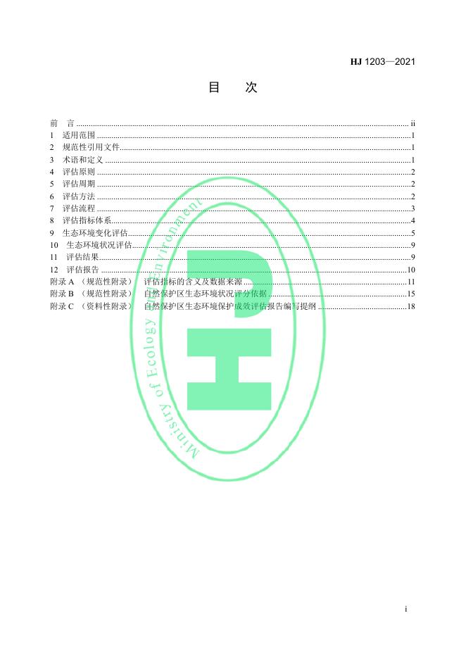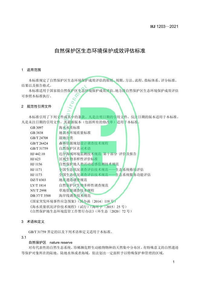 HJ 1203-2021 自然保护区生态环境保护成效评估标准(试行)