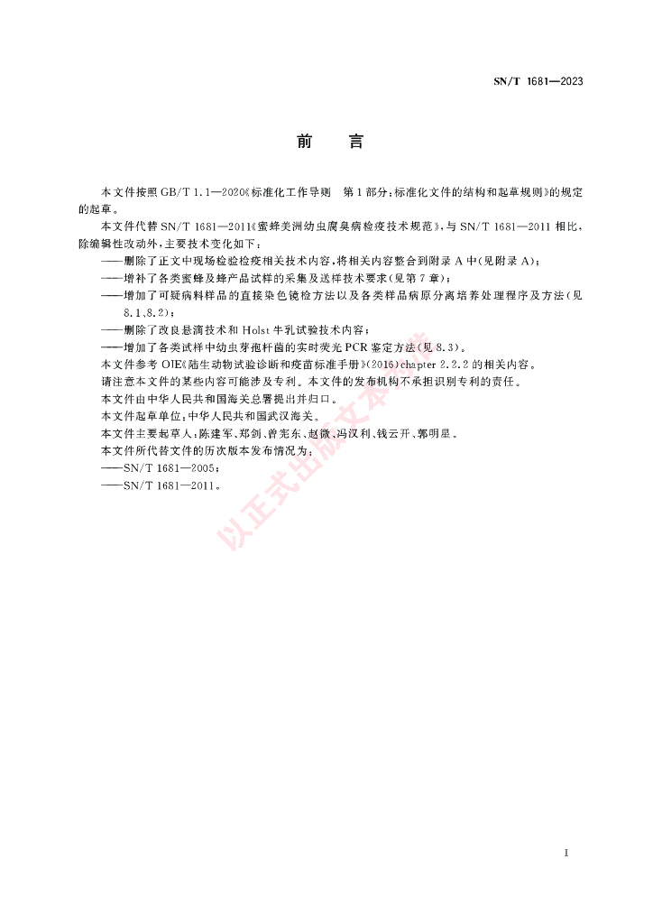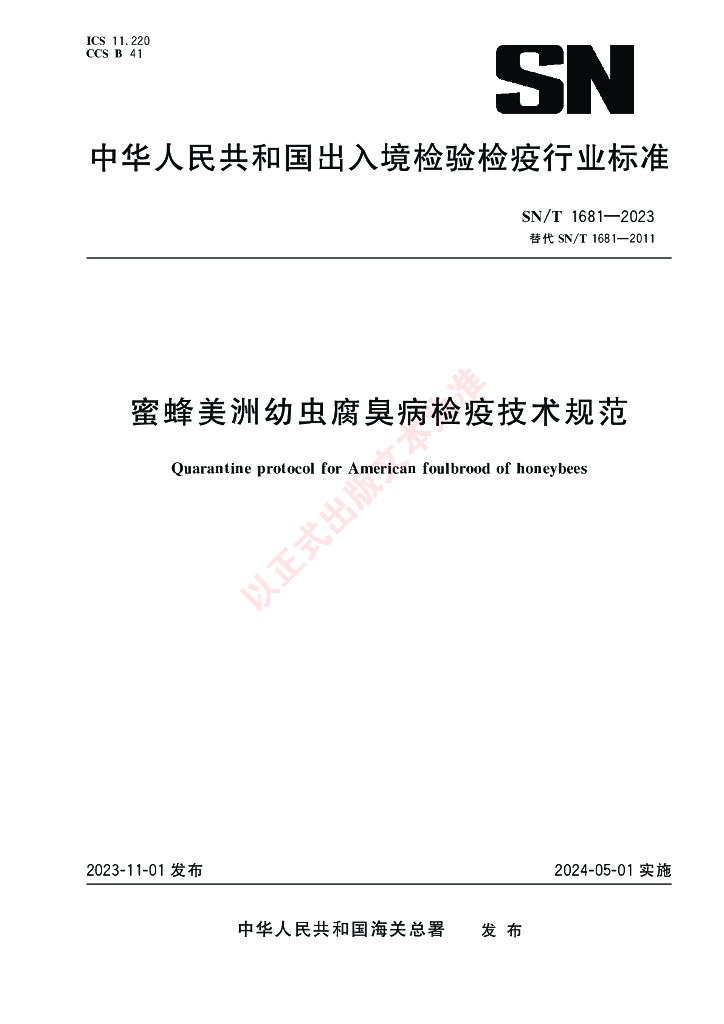 SN/T 1681-2023 蜜蜂美洲幼虫腐臭病检疫技术规范