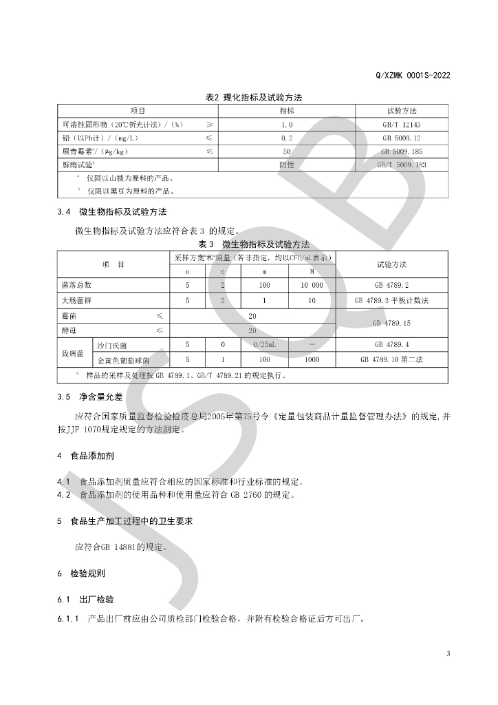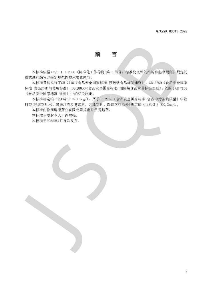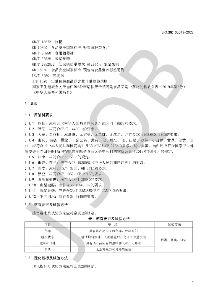 Q/XZMK 0001S-2022 植物酵素饮品
