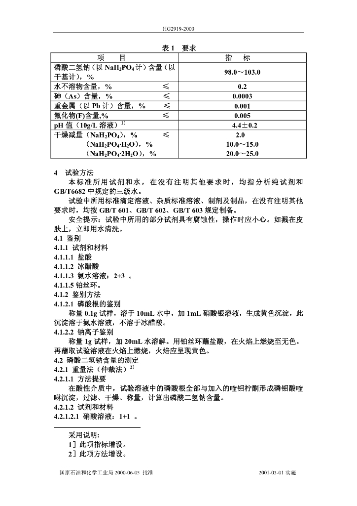 HG 2919-2000 食品添加剂 磷酸二氢钠