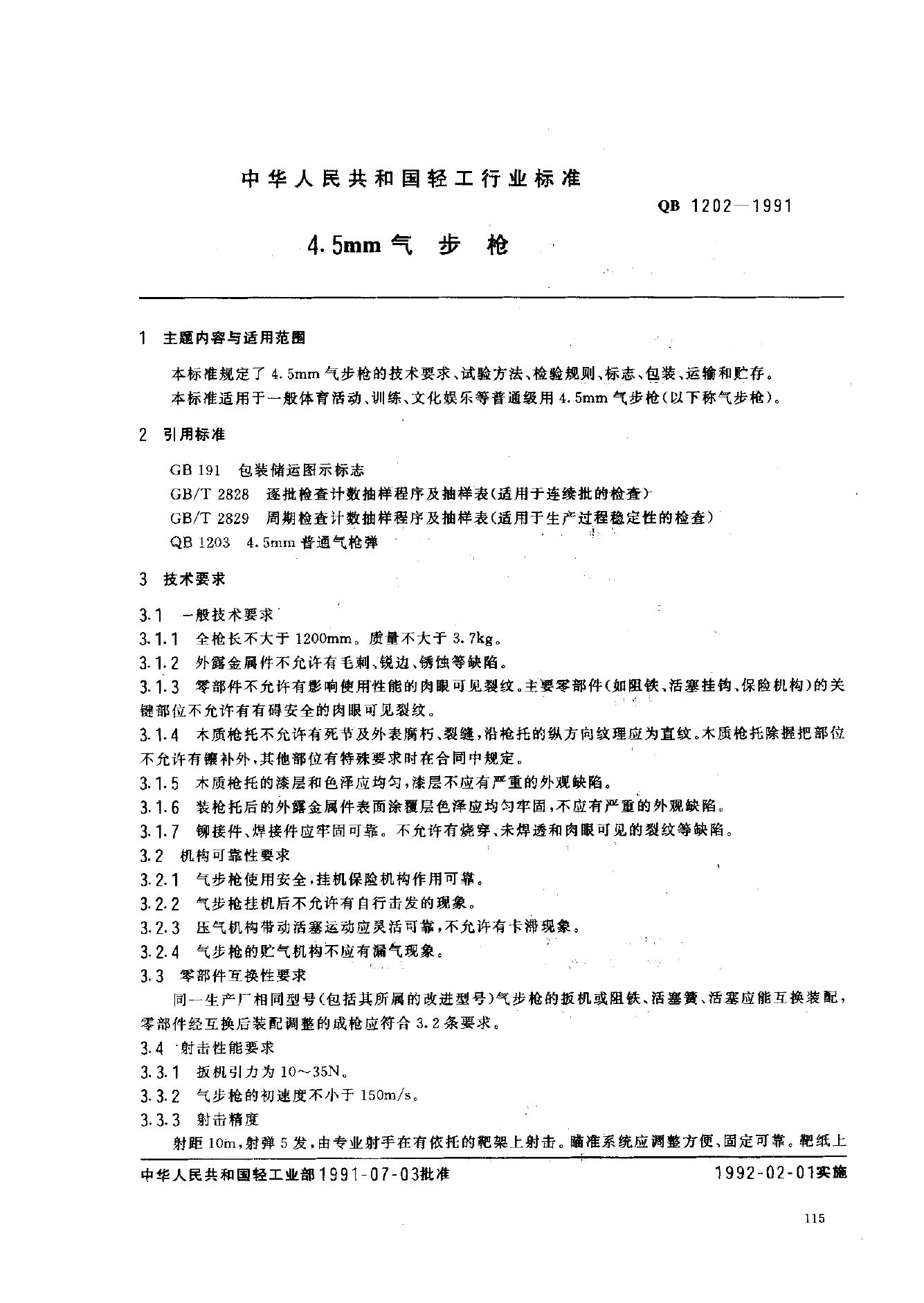 QB 1202-1991 4.5mm气步枪技术条件
