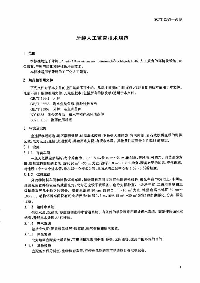 SC/T 2099-2019 牙鲆人工繁育技术规范