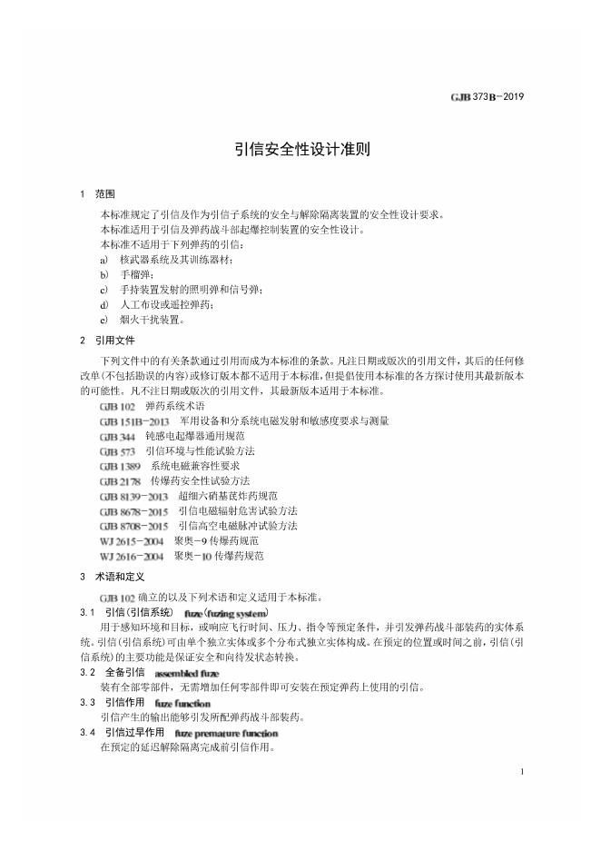 GJB 373B-2019 引信安全性设计准则