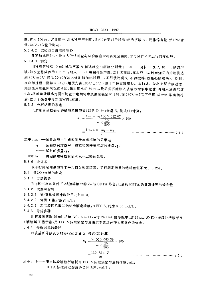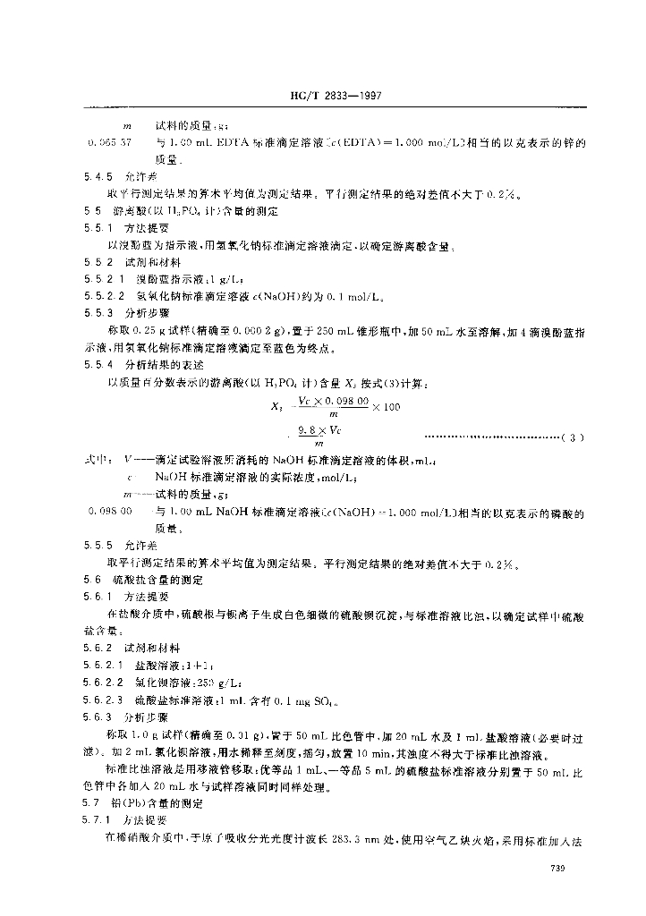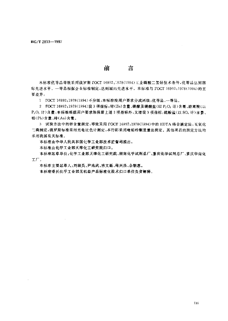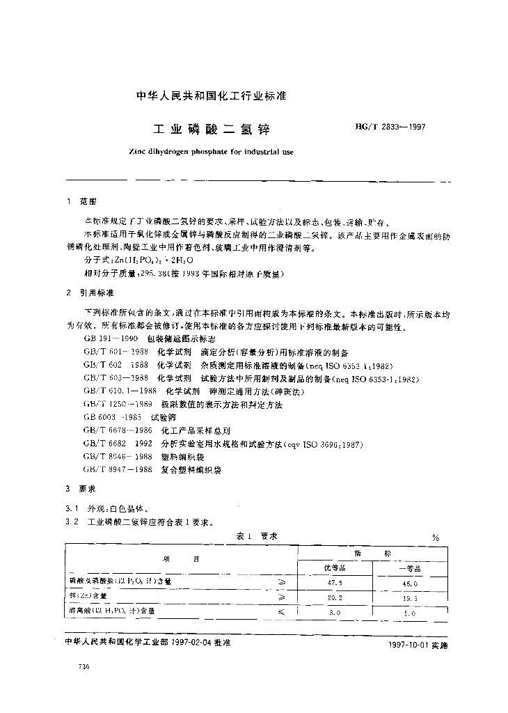 HG/T 2833-1997 工业磷酸二氢锌