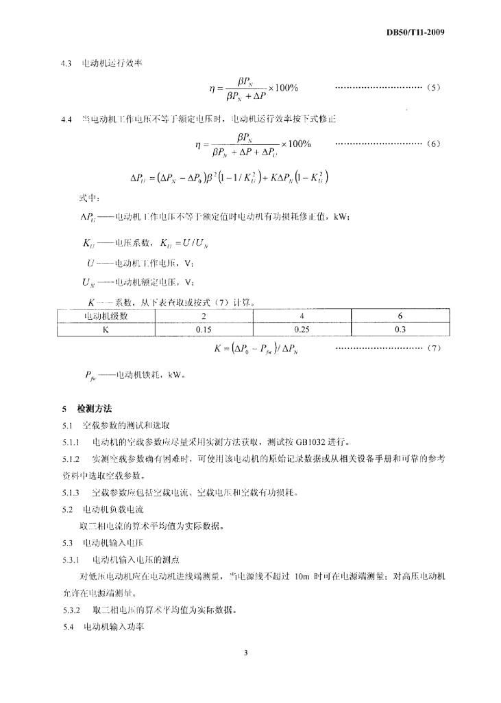 DB50/T 11-2009 三相异步电动机节能监测规定