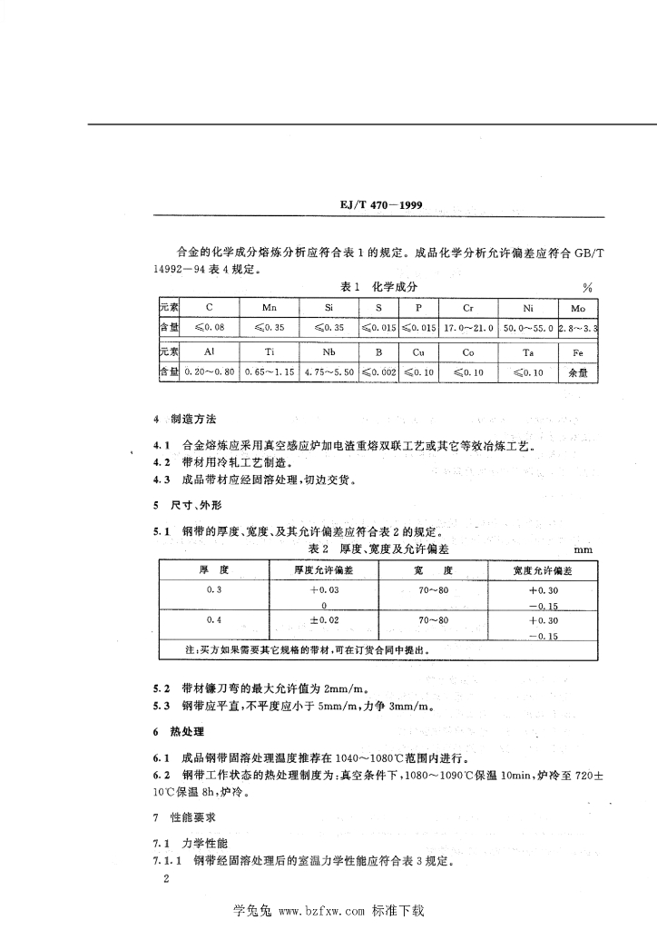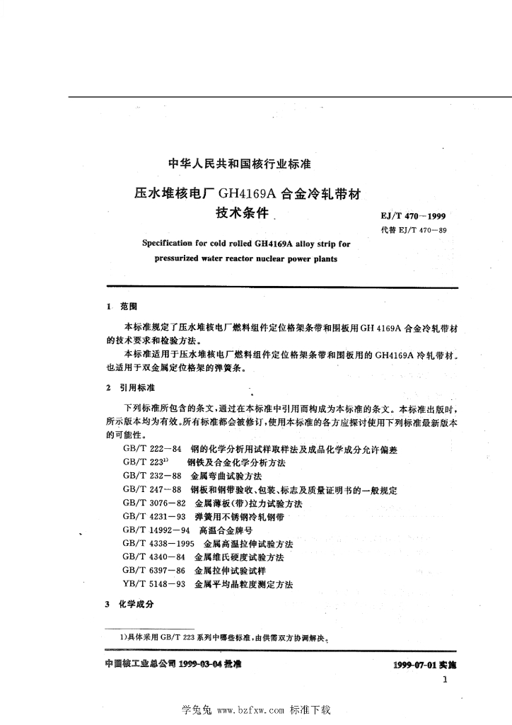 EJ/T 470-1999 压水堆核电厂GH4169A合金冷轧带材技术条件
